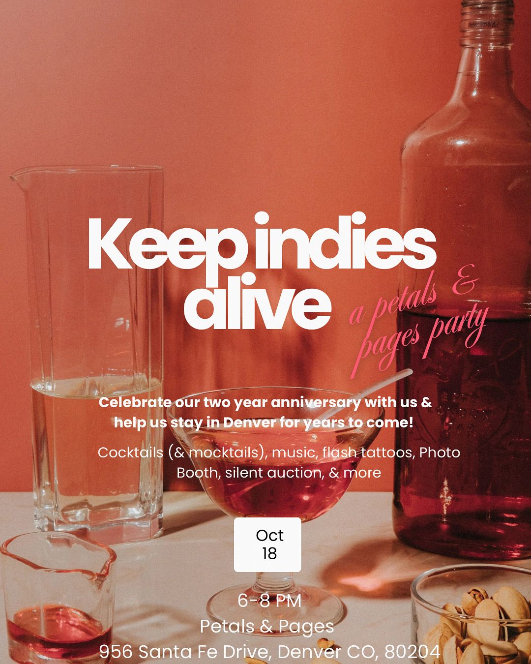 Come join us for a night of celebrating literature, the arts, and small business in Denver. We’ll have themed cocktails (& mocktails!), flash tattoos, a photo booth, an epic birthday cake, a little bit of drag, and an incredible silent auction and raffle.