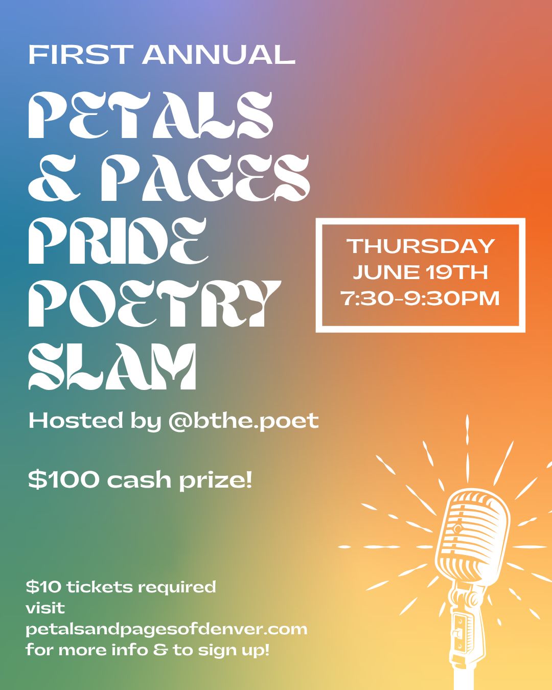 First Annual Petals & Pages Pride Poetry Slam - Thursday, June 19th 7:30-9:30pm